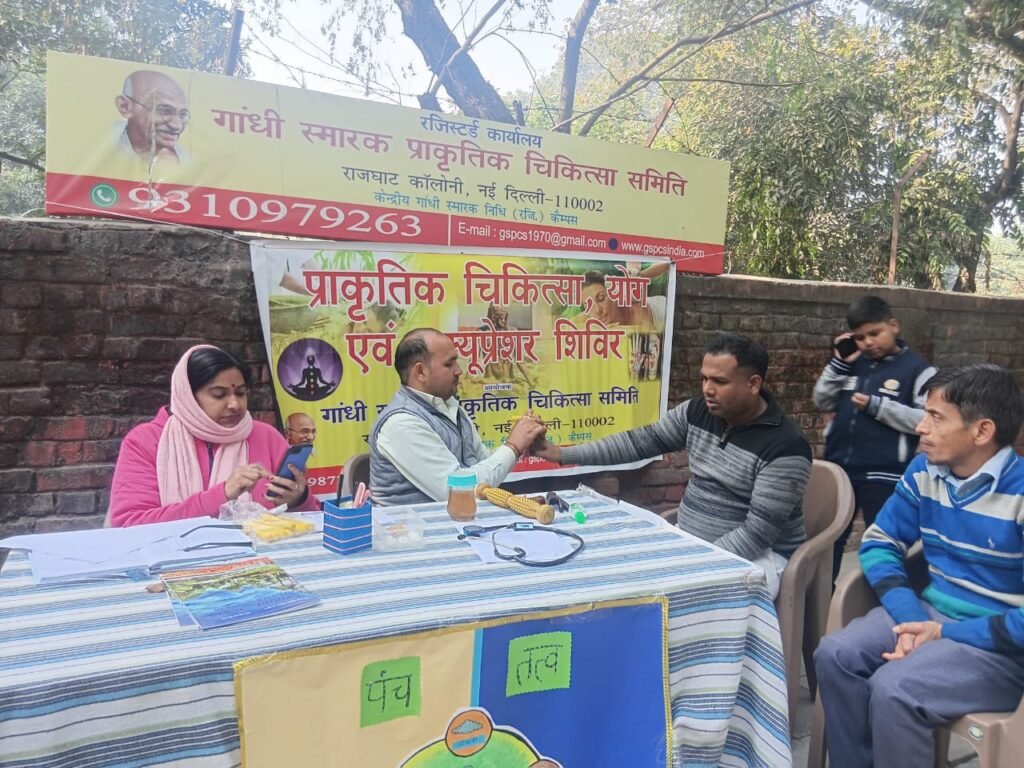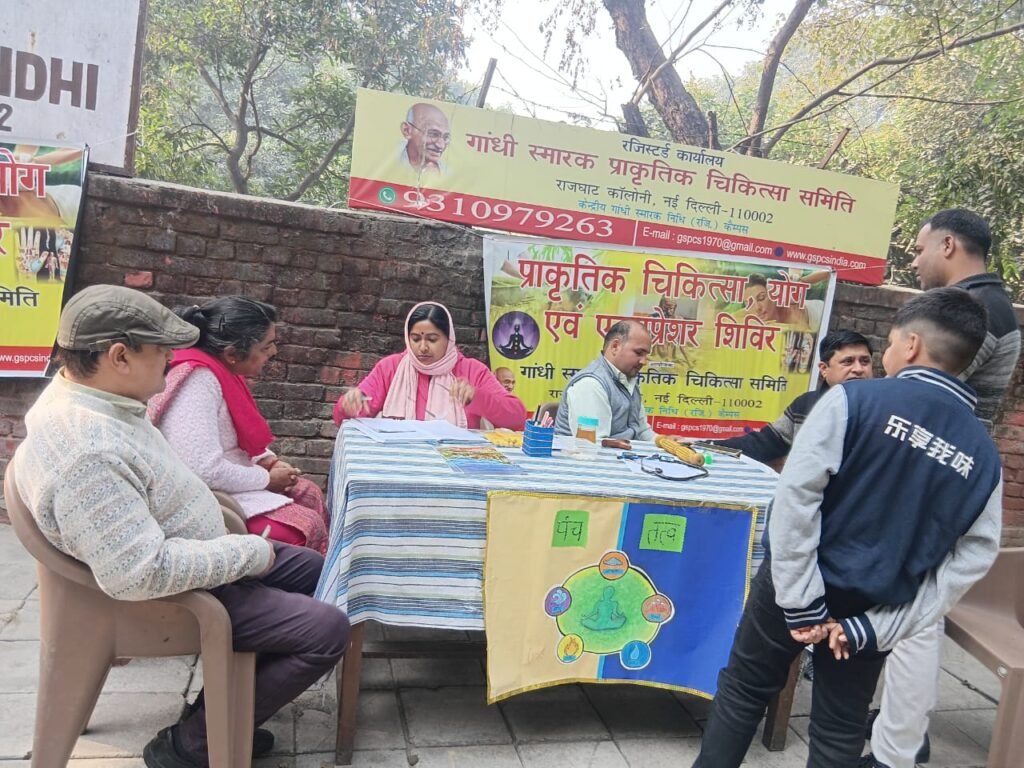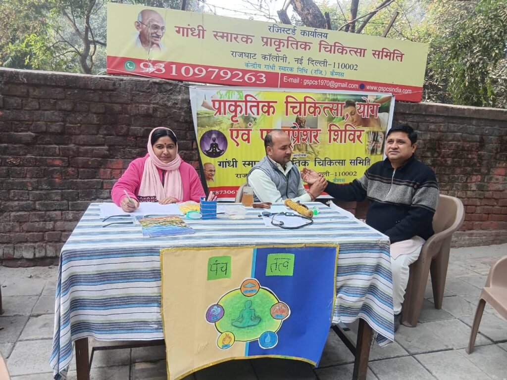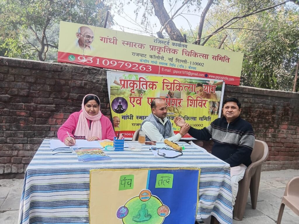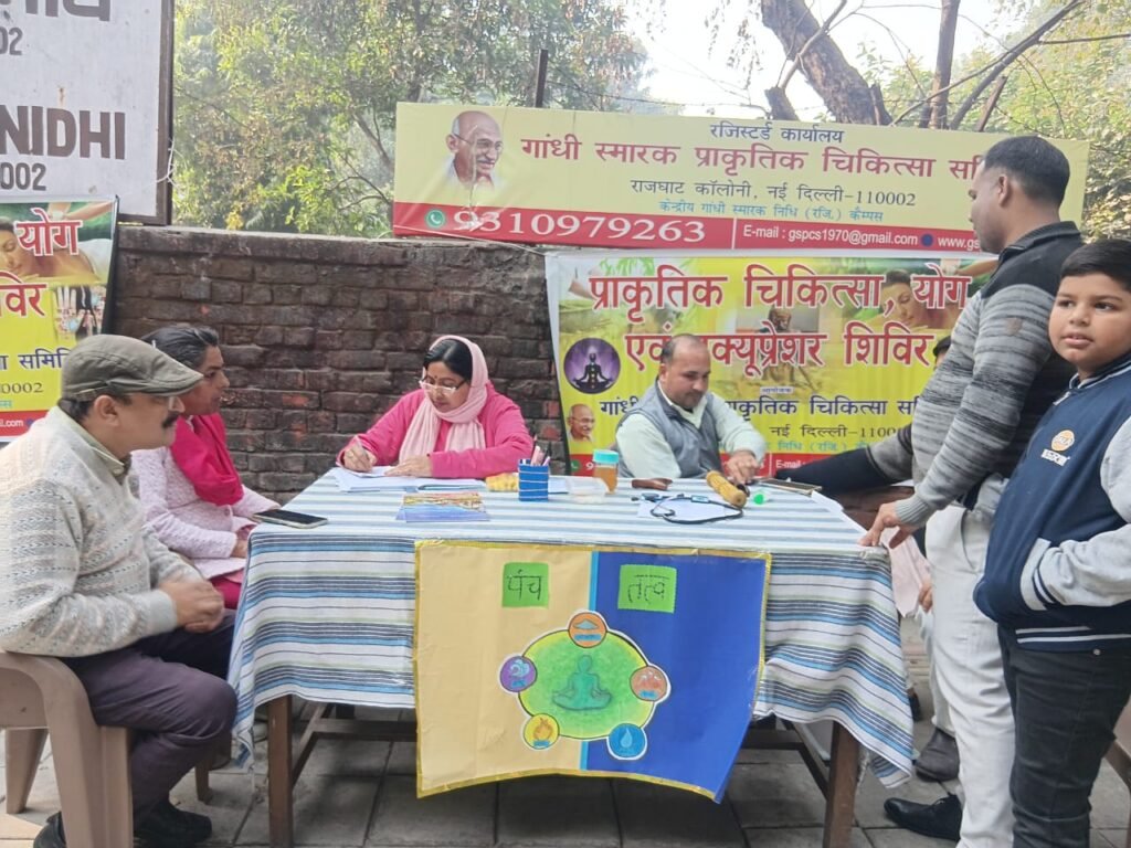 गांधी निधि कैम्पस, राजघाट, नई दिल्ली-110002 के मुख्य द्वार पर निःशुल्क प्राकृतिक चिकित्सा एवं एक्यूप्रेशर शिविर का आयोजन किया गया।